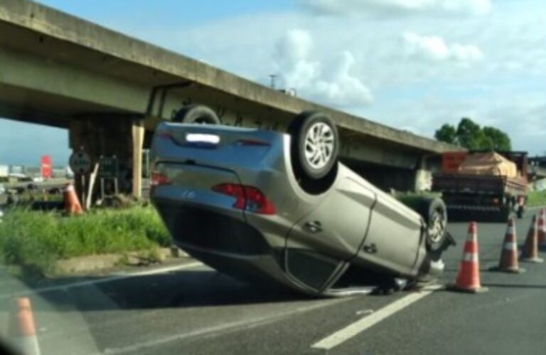 Carro capota após acidente na BR-116 em Esteio e motorista fica ferido