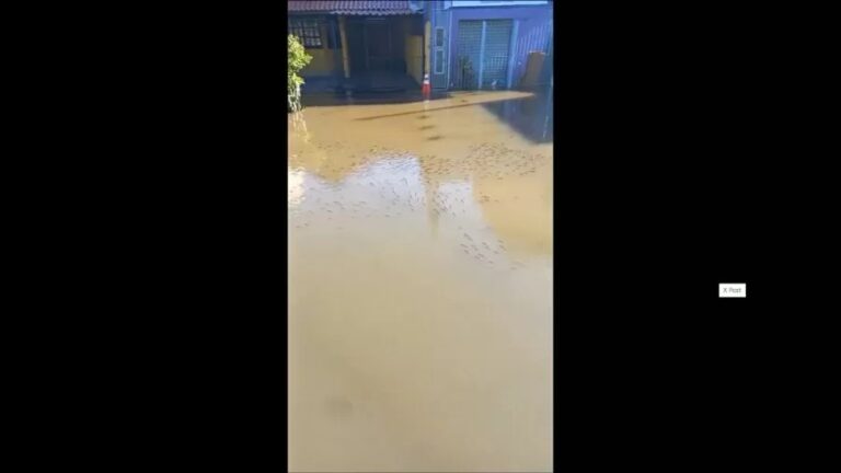 Enchente em Canoas: Peixes são flagrados nadando em rua