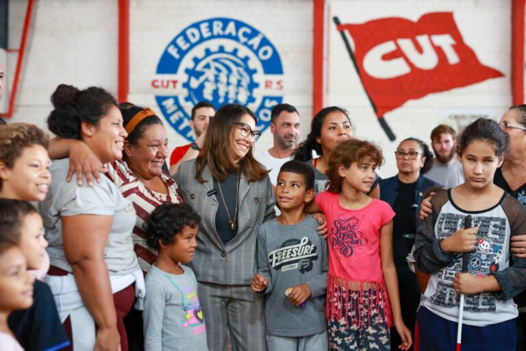 Primeira dama Janja visita atingidos pelas inundações em abrigo de Canoas