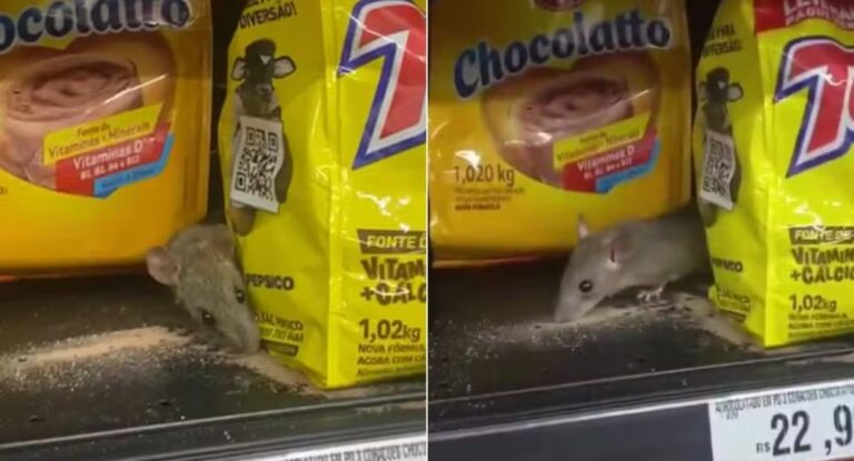 Cliente flagra rato em prateleira de supermercado comendo achocolatado