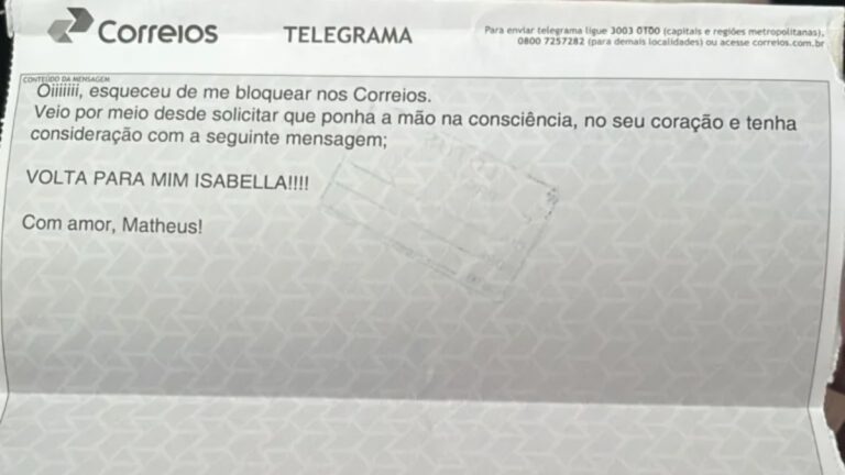 “Esqueceu de me bloquear nos correios”; jovem recebe telegrama do ex-namorado