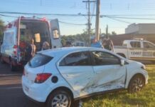 Carro capota duas vezes após colisão com outro veículo em Canoas