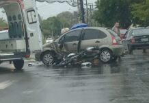 Grávida fica ferida após acidente entre carro e moto em Canoas