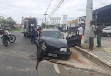 Motorista fica ferido após carro bater em poste na Boqueirão, em Canoas
