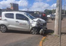 Motorista fica ferido após carro bater em poste na BR-116, em Canoas