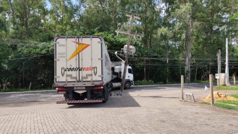 Caminhão faz manobra e fica preso nos fios de energia elétrica em Nova Santa Rita