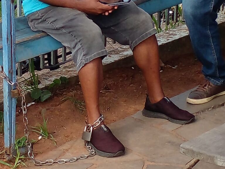 Funcionário da Vicasa se acorrenta para pedir pagamento de rescisão